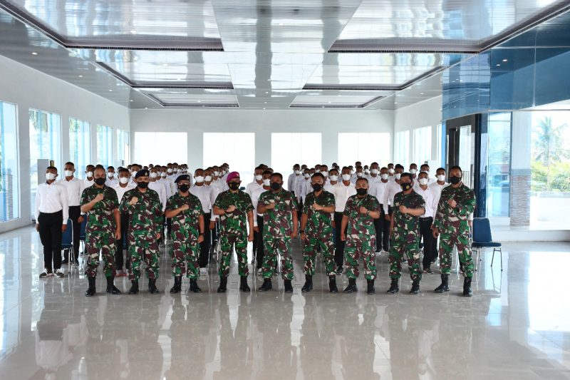 BELAWAN – Wakil Danlantamal I Kolonel Marinir Amir Kasman yang mewakili Komandan Pangkalan Utama TNI Angkatan Laut (Danlantamal) I Laksamana Pertama TNI Johanes Djanarko Wibowo memberikan pengarahan kepada Calon Tamtama (Cata) PK TNI Angkatan Laut Gelombang I TA 2022 sebelum diberangkatkan seleksi tingkat lanjutan, bertempat di Gedung Yos Sudarso Mako Lantamal I, Lantamal I Belawan, Jalan Serma Hanafiah Belawan, Selasa, (14/06/2022).