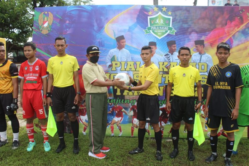 CILACAP – Gelaran Liga Santri Piala Kasad Tahun 2022 bergulir, Danrem 071/Wijayakusuma Kolonel Inf Yudha Airlangga, S.E., lakukan kick off menendang bola pertama diwilayah Kodim 0703/Cilacap. Senin (20/6/2022) di Lapangan Sepakbola Jati Persada Kecamatan Cilacap Tengah, Cilacap.