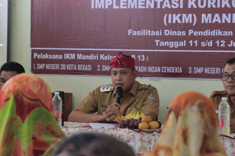 KOTA BEKASI – Pelaksana tugas(Plt) Wali Kota Bekasi Tri Adhianto didampingi Kepala Dinas Pendidikan Inayatullah buka kegiatan Bimbingan Teknis Implementasi Kurikulum Merdeka(IKM) Mandiri yang berlangsung di Sekolah Menengah Pertama(SMP) Negeri 38 Kota Bekasi, Perwira, Bekasi Utara, Senin 11/07/2022.