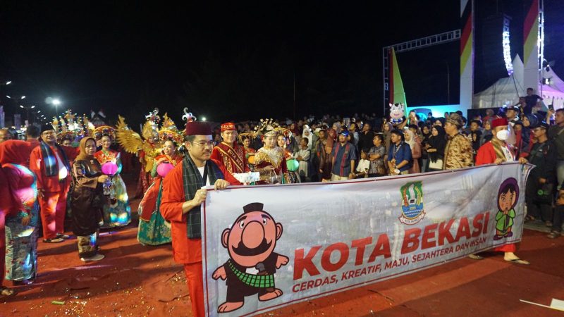 Kota Bekasi memeriahkan dengan membawa atribut berupa Dongdang yang di dalamnya berisi Makanan Khas Kota Bekasi, menampilkan Pengantin Khas Kota Bekasi, Kostum Kotemporer yang dibawa oleh Dinas Pariwisata dan Kebudayaan Kota Bekasi yang diperagakan langsung oleh para Pejabat maupun Staf, Penari Tari Ronggeng yang dikenal di Kota Bekasi.