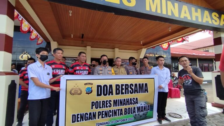 MINAHASA – Turut sepenanggungan dengan peristiwa yang terjadi di stadion Kanjuruan Malang, Polres Minahasa melaksanakan Doa bersama pencipta bola mania sesuai arahan dari pak Kapolda Sulawesi Utara, Senin (3/10/2022).