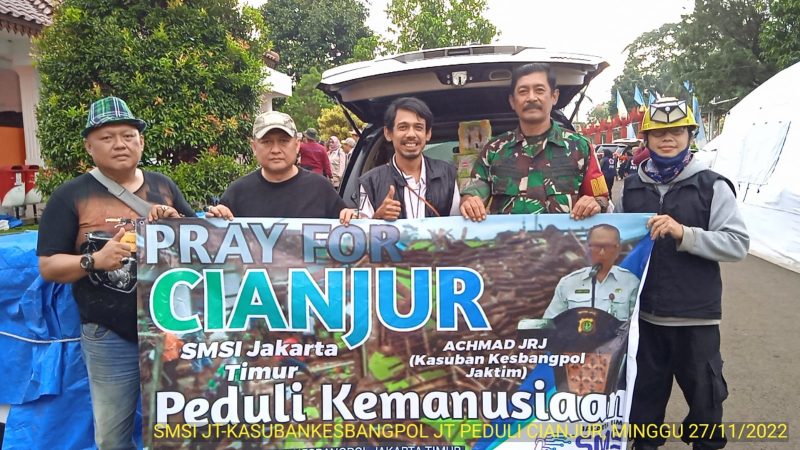 CIANJUR – Minggu (27/11/2022) tampak ketua Serikat Media Siber Indonesia (SMSI) Jakarta Timur Wisnu Wicaksana di posko BPBD Kabupaten Cianjur, bersama Achmad Jani Rivai Jusuf (Achmad_JRJ), Kepala Suku Badan Kesbangpol Jakarta Timur.