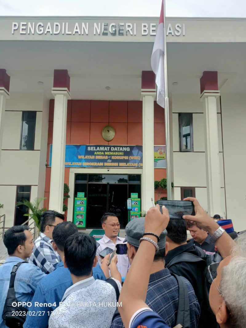 KOTA BEKASI – Sidang Pembacaan Dakwaan terkait kasus penyerobotan tanah yang berada di wilayah Kelurahan Jatibening, Kecamatan Pondok Gede dibacakan langsung di Pengadilan Negeri Bekasi, Selasa, (28/02/23).