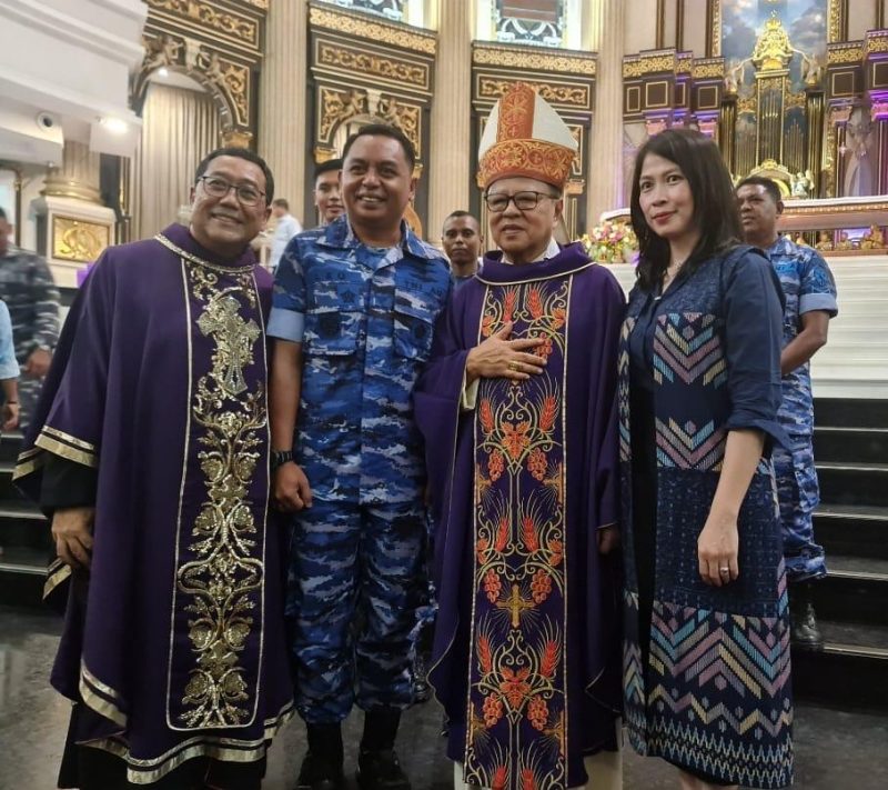 PONTIANAK – Uskup Umat Katolik Monsigneur Ignatius Kardinal Suharyo didampingi Uskup Agung Pontianak Mgr. Agustinus Agus memimpin Perayaan Ekaristi Umat Katolik di lingkungan TNI Polri (Ordinariatus Castrensis Indonesia/OCI) di Pontianak.