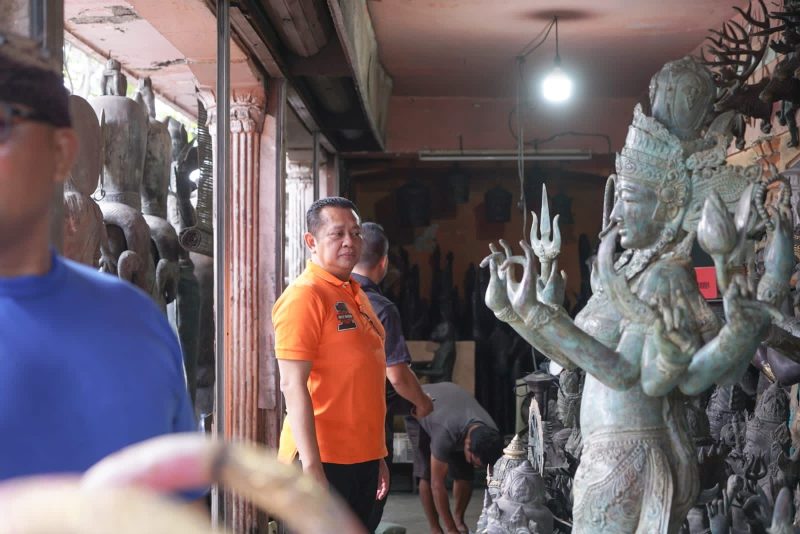 BALI – Ketua MPR RI sekaligus Wakil Ketua Umum Partai Golkar Bambang Soesatyo mendukung kiprah para pelaku UMKM kerajinan logam yang memproduksi berbagai patung dan aksesoris dari perak, perunggu, alumunium, tembaga, kuningan, serta menjual barang-barang antik, yang berada di kawasan Tohpati, Jalan WR Supratman, Denpasar, Bali.
