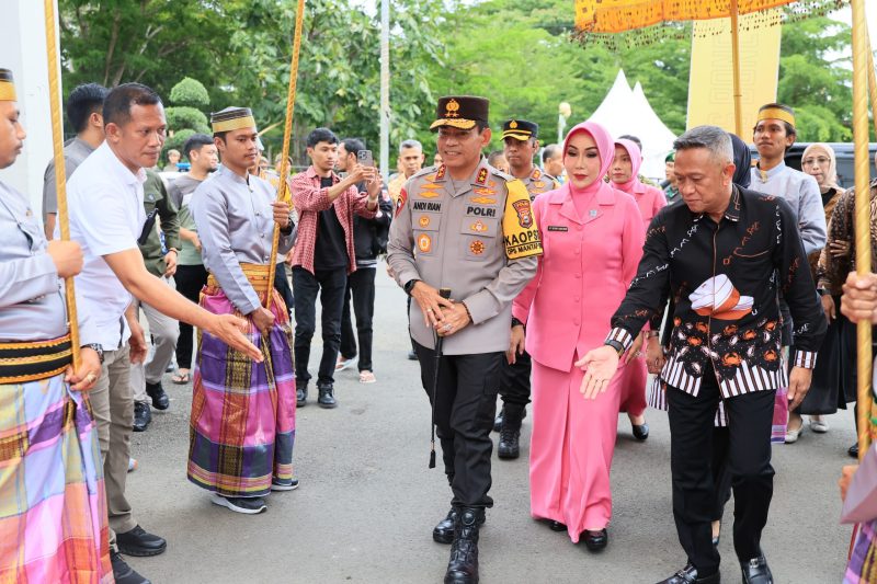 Dalam kegiatan tersebut Kapolda Sulawesi Selatan disambut dengan acara adat Kab Bone.