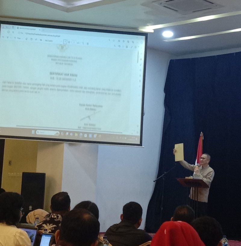Kepala Kantah ATR/BPN Kota Bekasi, Amir Sofwan, membuka acara tersebut dengan penuh antusias. “Pada Sertifikat Elektronik di belakang ada barcode. Di luar ini, adalah palsu,” tegasnya sambil menunjukkan contoh sertifikat elektronik yang baru.