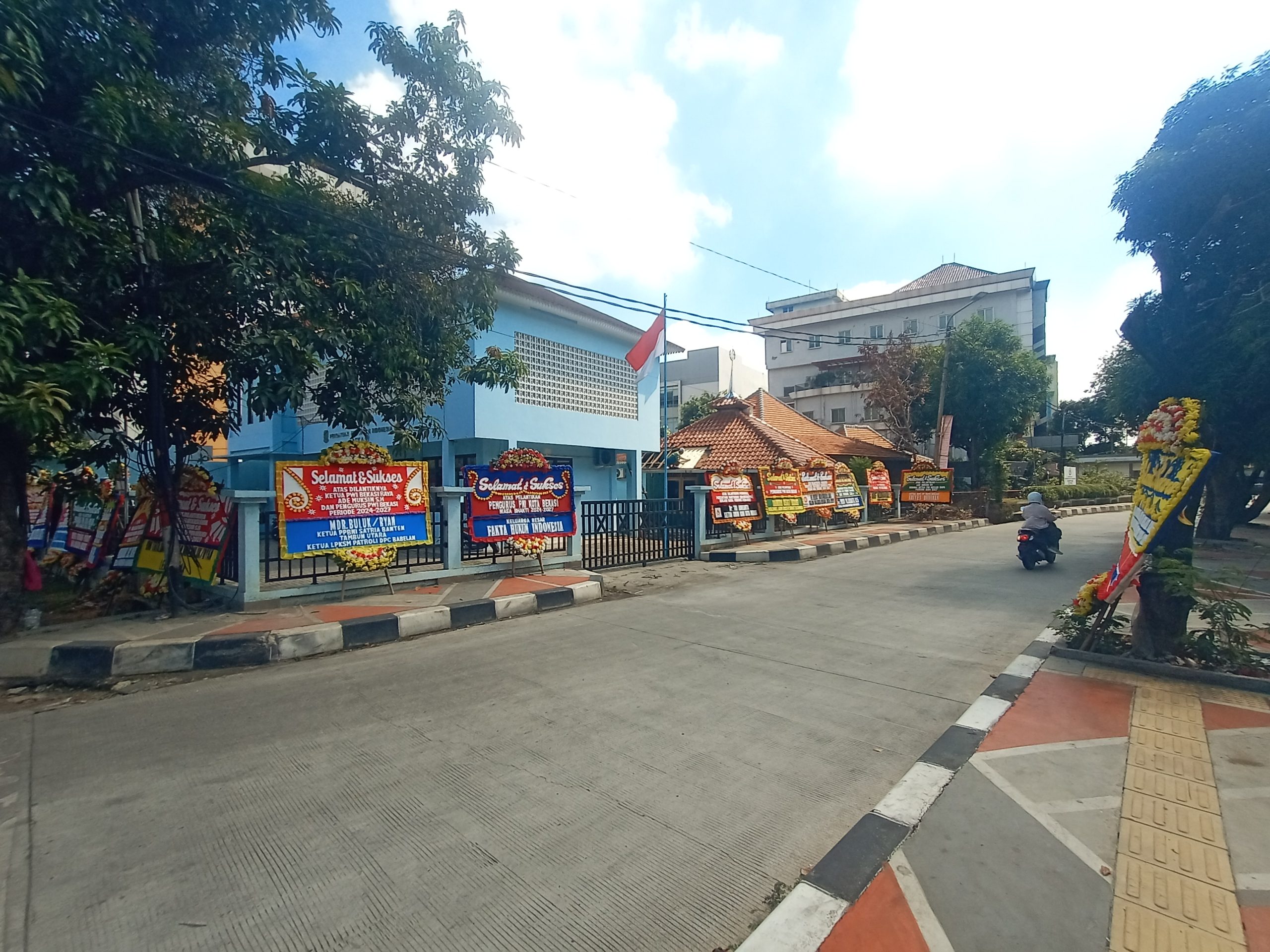 “Karangan bunga yang diterima pengurus berasal dari Pj Wali Kota Bekasi, para Calon Wali Kota Bekasi dari berbagai partai bahkan para pengusaha pun tampak terpampang di depan maupun samping halaman bahkan di seberang Kantor PWI Bekasi,” kata Ade Muksin, Ketua PWI Bekasi Raya.