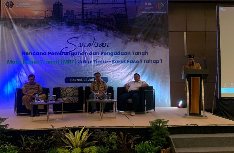 KOTA BEKASI – Asisten Pembangunan dan Kesejahteraan Masyarakat Kota Bekasi Dr H. Inayatullah membuka sosialisasi rencana pembangunan MRT jalur timur – barat fase 1 wilayah Kota Bekasi. Hadir pada kegiatan tersebut para pemangku jabatan dari Kementerian ATR, Kementerian Perhubungan, Kepala Disperkimtan Kota Bekasi, Camat, Lurah dan para pengurus RW, RT, Tokoh Masyarakat Medan Satria serta warga yang terdampak pembangunan MRT.