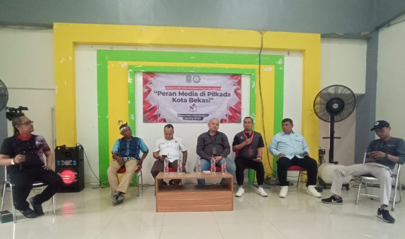KOTA BEKASI – Kelompok kerja (Pokja) wartawan humas Kota Bekasi menggelar diskusi publik bertema” Peran Media di Pilkada Kota Bekasi” yang diselengarakan di gedung Crative Center Kota Bekasi pada Jum’at (26/7/2024).