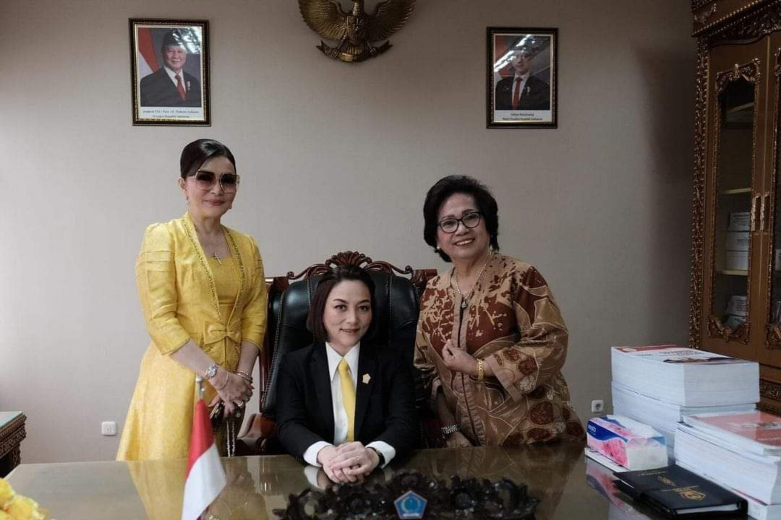 Foto: MEP saat foto bersama Kakak Kandung Christiany Eugenia Paruntu di ruang kerjanya, seusai pelantikan Pimpinan Definitif DPRD Sulut