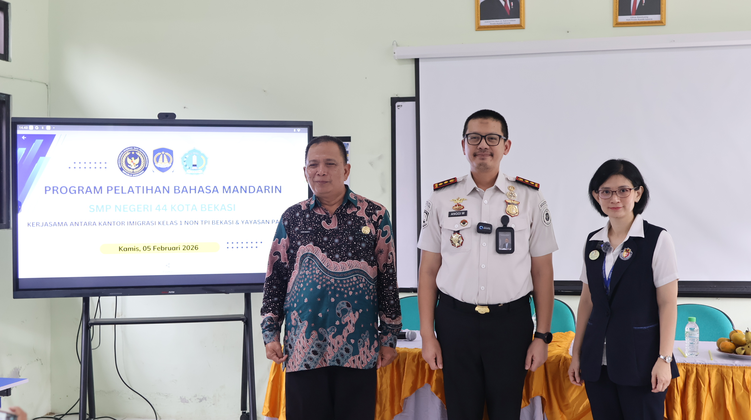 BEKASI – Kantor Imigrasi Kelas I Non TPI Bekasi menunjukkan komitmennya dalam turut mencetak generasi muda berdaya saing global. Bekerja sama dengan Yayasan Pahoa, Imigrasi Bekasi resmi menyelenggarakan Program Pelatihan Bahasa Mandarin yang dipusatkan di SMP Negeri 44 Kota Bekasi.