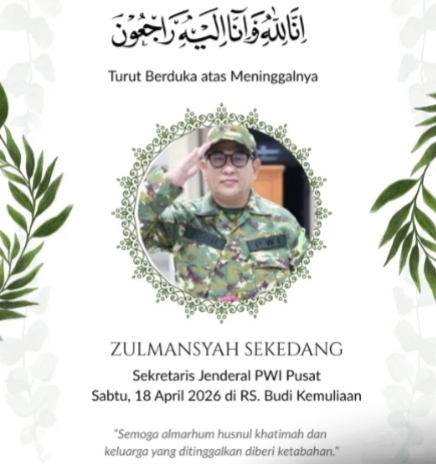JAKARTA – Kabar duka menyelimuti dunia pers Indonesia. Sekretaris Jenderal Persatuan Wartawan Indonesia (PWI) Pusat, Zulmansyah Sekedang (54), mengembuskan napas terakhir pada Sabtu dini hari pukul 00.10 WIB di Rumah Sakit Budi Kemuliaan. Almarhum wafat akibat serangan jantung.