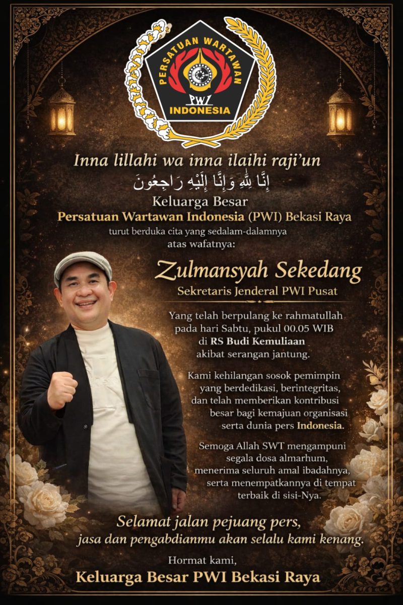 PWI Bekasi Raya Sampaikan Duka Mendalam atas Wafatnya Sekjen PWI Pusat Zulmansyah Sekedang