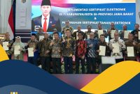 Bandung – Menteri Agraria dan Tata Ruang/Kepala Badan Pertanahan Nasional (ATR/BPN), Agus Harimurti Yudhoyono (AHY) menyerahkan 136 Sertipikat Tanah Elektronik bagi masyarakat dan pemerintah…