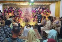 Anggota DPRD Provinsi Jawa Barat, Waras Wasisto menerima lamaran untuk putri sulungnya, Mutia Ellena Wasisto di Perumahan Kemang Pratama, Kota Bekasi, Minggu (3/7/2022). Mutia…