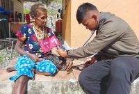 Satgas Binmas Noken Operasi Damai Cartenz 2022 mengelar Program Keladi Sagu, Melayani Kesehatan masyarakat sugapa, Kabupaten Intan Jaya, Provinsi Papua, Selasa (5/4/2022). Kegiatan ini…