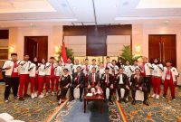 Presiden Joko Widodo memberikan semangat secara langsung kepada para atlet yang akan bertanding dalam ajang FISU World University Game, pada Jumat, 28 Juli 2023,…